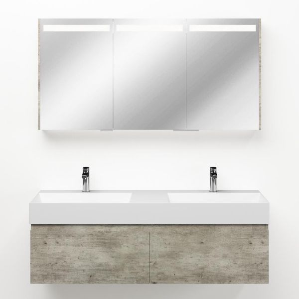 | Bellanti Solo/Azzurra badmeubel 140x46 2 softclose laden steigerhout look grijs greeploos keramische wastafel dubbel wit mat met 2 kraangaten |