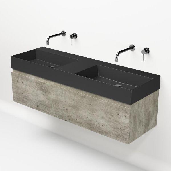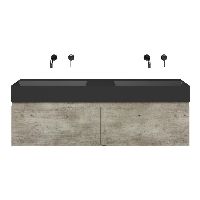 | Bellanti Solo/Azzurra badmeubel 140x46 2 softclose laden steigerhout look grijs greeploos keramische wastafel dubbel antraciet mat zonder kraangaten |