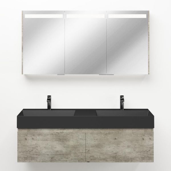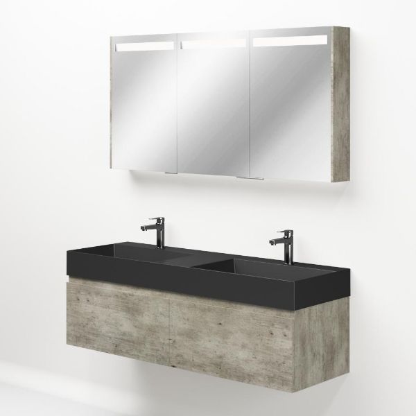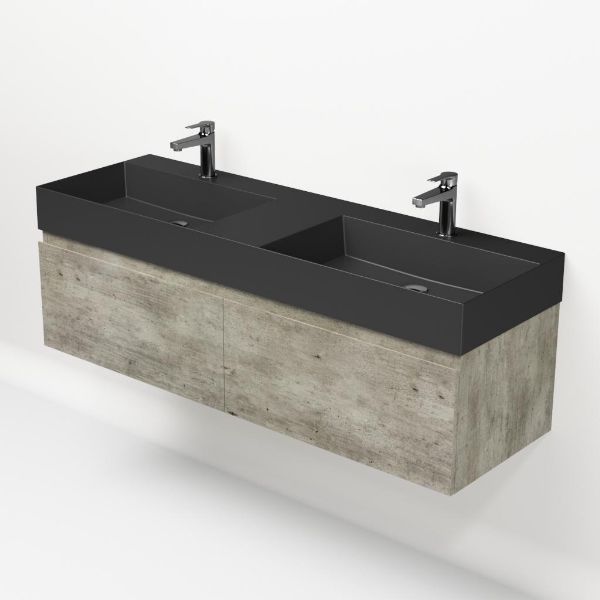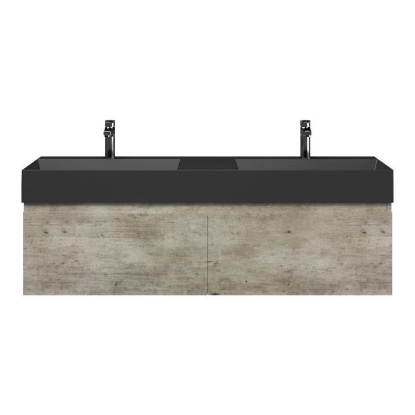 | Bellanti Solo/Azzurra badmeubel 140x46 2 softclose laden steigerhout look grijs greeploos keramische wastafel dubbel antraciet mat met 2 kraangaten |