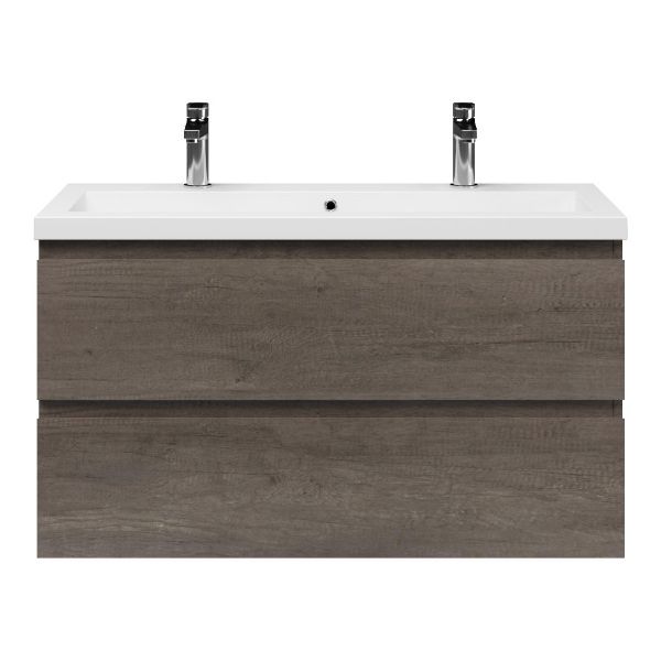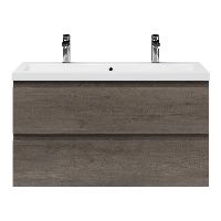 | | Bellanti Secca/Esta ondiep badmeubel 100x36 2 softclose laden olm donker grijs greeploos polystone wastafel wit met 2 kraangaten |