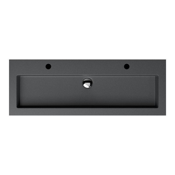 | Bellanti Secca/Esta-Q ondiep badmeubel 100x36 2 softclose laden olm donker grijs greeploos met quartz wastafel mat grijs met 2 kraangaten zonder overloop |