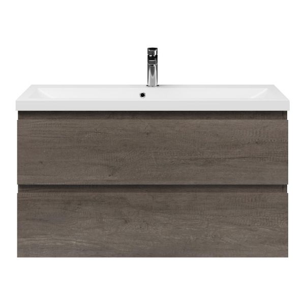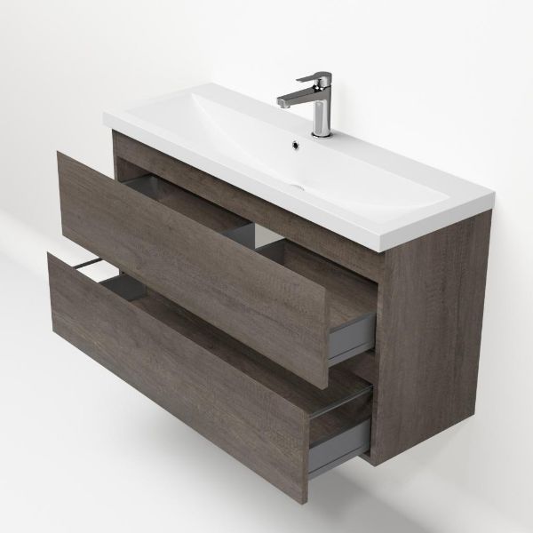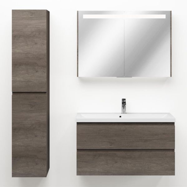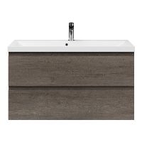 Ondiepe greeploos badkamermeubel in de kleur olm donker grijs. Badmeubel is praktisch voor een compact badkamer. Het meubel van 100 cm breed is er. De wastafel is vervaardig in polystone en heeft de kleur wit. Dit badkamermeubel met deze wastafel is leverbaar tussen de 60 cm t/m 100 cm.