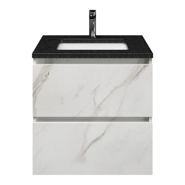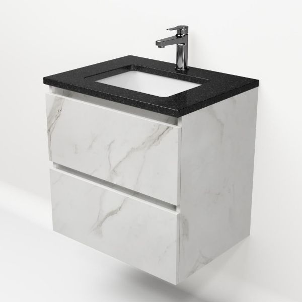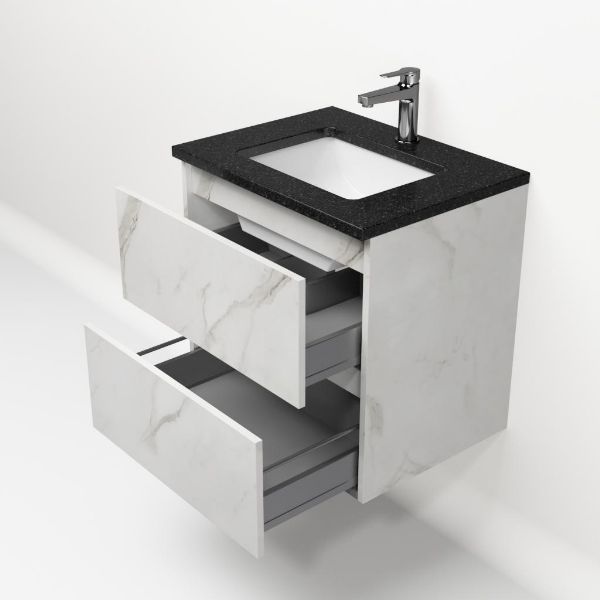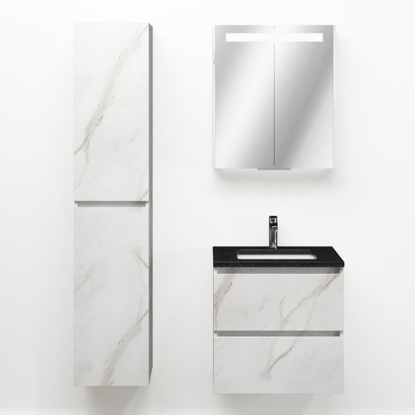| Bellanti Elena/Ciro badmeubel 60x46 2 softclose laden marmer structuur wit greeploos keramische wastafel wit met 1 kraangat |
