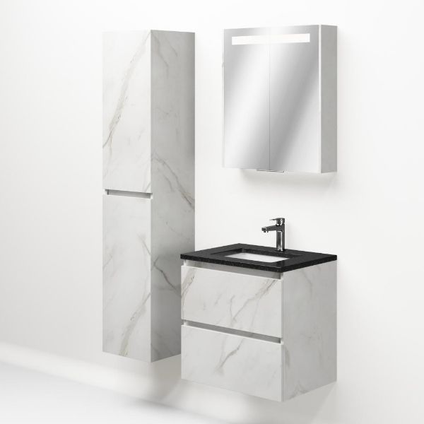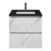 | | Bellanti Elena/Ciro badmeubel 60x46 2 softclose laden marmer structuur wit greeploos keramische wastafel wit met 1 kraangat |