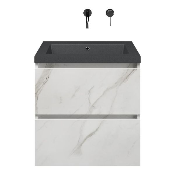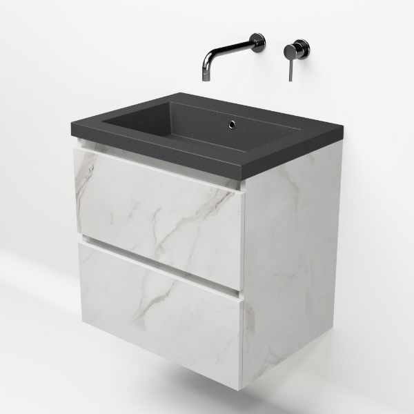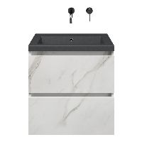 Bellanti Elena/Esta-Q badmeubel 60x46 2 softclose laden marmer structuur wit greeploos quartz wastafel mat grijs zonder kraangaten