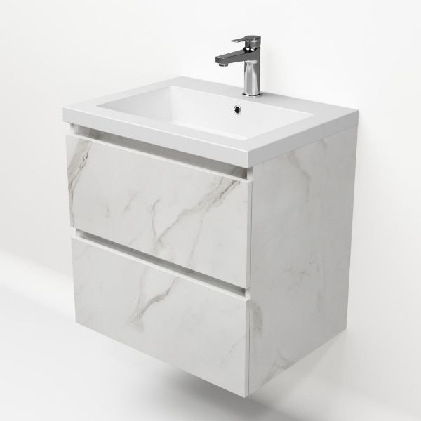 | | Bellanti Elena/Esta-Q badmeubel 60x46 2 softclose laden marmer structuur wit greeploos quartz wastafel mat wit met 1 kraangat |