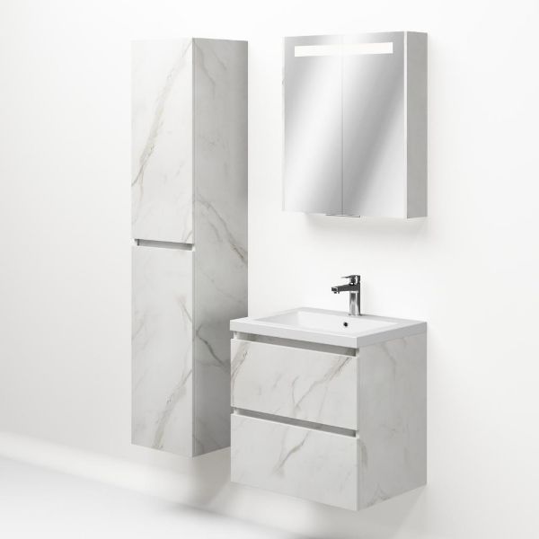 | Bellanti Elena/Esta-Q badmeubel 60x46 2 softclose laden marmer structuur wit greeploos quartz wastafel mat wit met 1 kraangat |