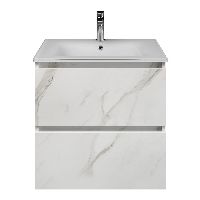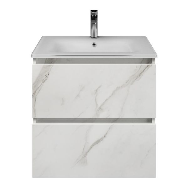 | Bellanti Elena/Glass badmeubel 60x46 2 softclose laden marmer structuur wit greeploos glazen wastafel wit met 1 kraangat |