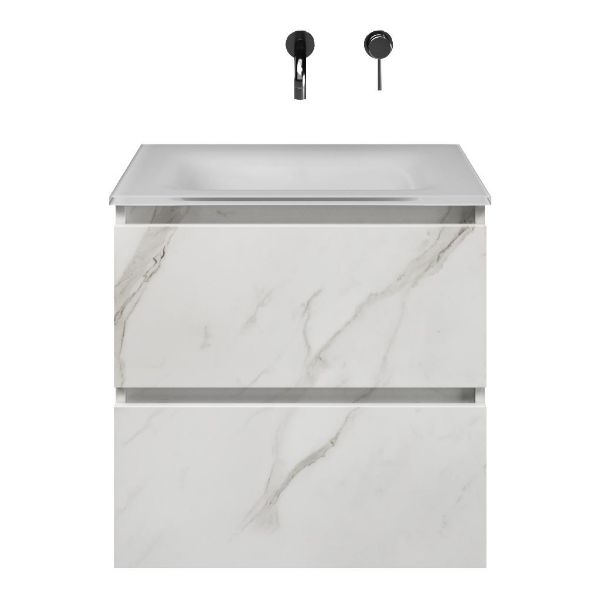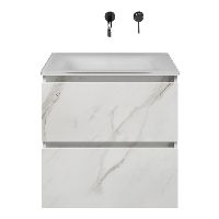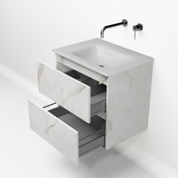 | Bellanti Elena/Glass badmeubel 60x46 2 softclose laden marmer structuur wit greeploos glazen wastafel wit zonder kraangaten |