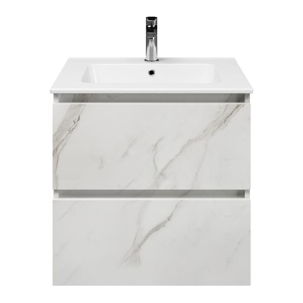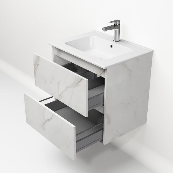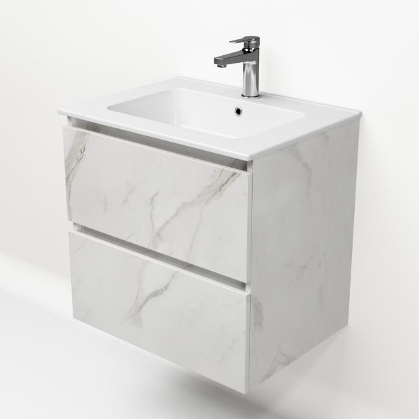 | Bellanti Elena/Quadra badmeubel 60x46 2 softclose laden marmer structuur wit greeploos keramische wastafel wit met 1 kraangat |