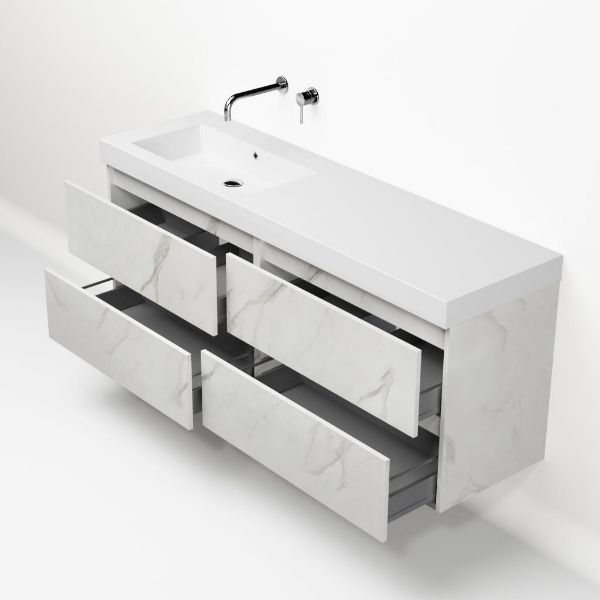 | Bellanti Elena/Esta badmeubel 160x46 4 softclose laden marmer structuur wit greeploos polystone enkele wastafel links wit zonder kraangat |