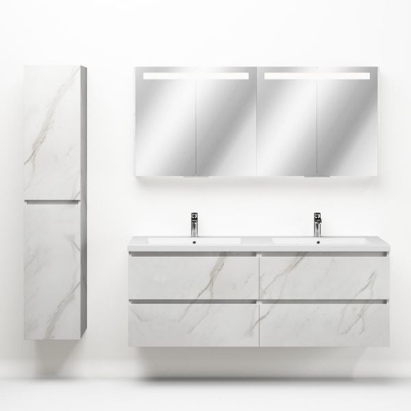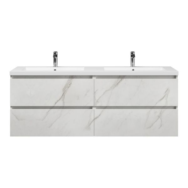 | | Bellanti Elena/Esta-Q badmeubel 160x46 4 softclose laden marmer structuur wit greeploos polystone dubbele wastafel mat wit 2 kraangaten |