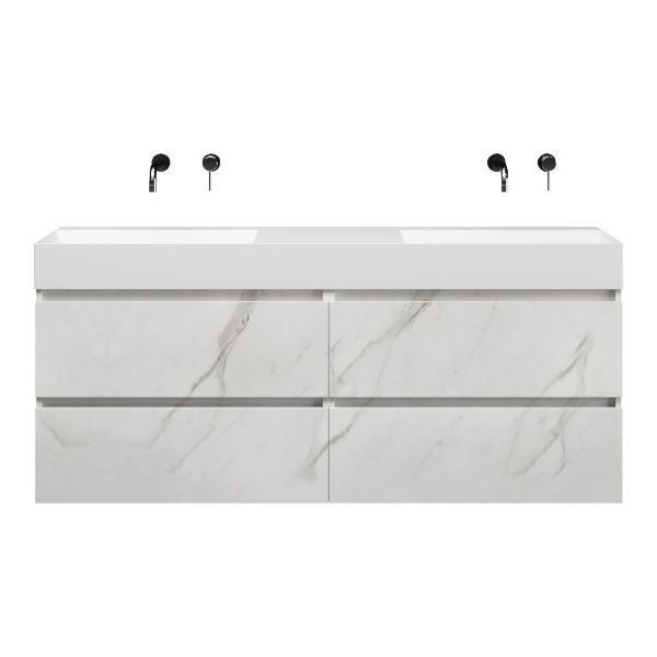 | | Bellanti Elena/Azzurra badmeubel 160x46 4 softclose laden marmer structuur wit greeploos keramiek dubbele wastafel mat wit zonder kraangaten |