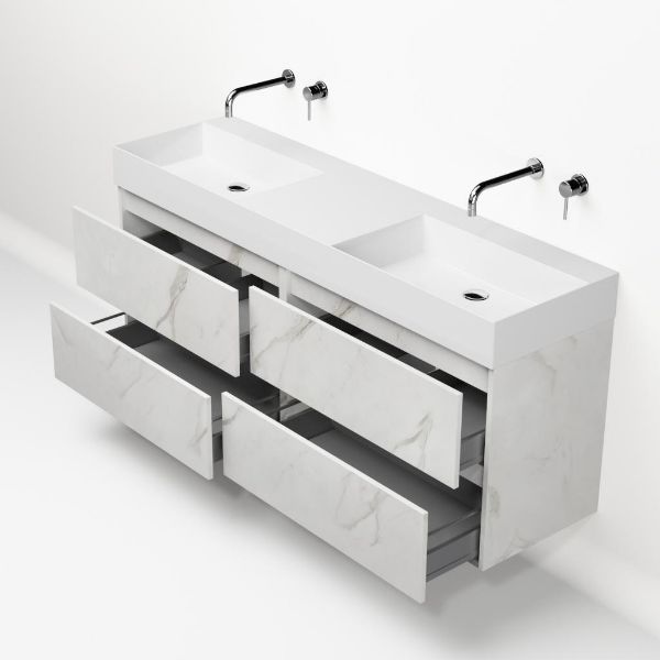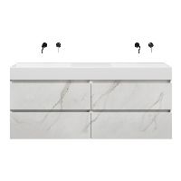 | Bellanti Elena/azzurra badmeubel 160x46 4 softclose laden marmer structuur wit greeploos keramiek dubbele wastafel wit zonder kraangaten |