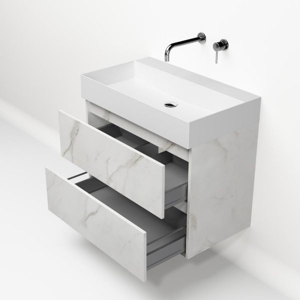 | Bellanti Elena/Azzurra badmeubel 80x46 2 softclose laden marmer structuur wit greeploos keramische wastafel wit mat zonder kraangaten |