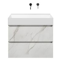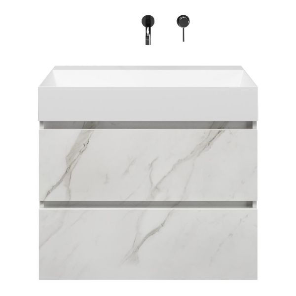 | | Bellanti Elena/Azzurra badmeubel 80x46 2 softclose laden marmer structuur wit greeploos keramische wastafel wit mat zonder kraangaten |