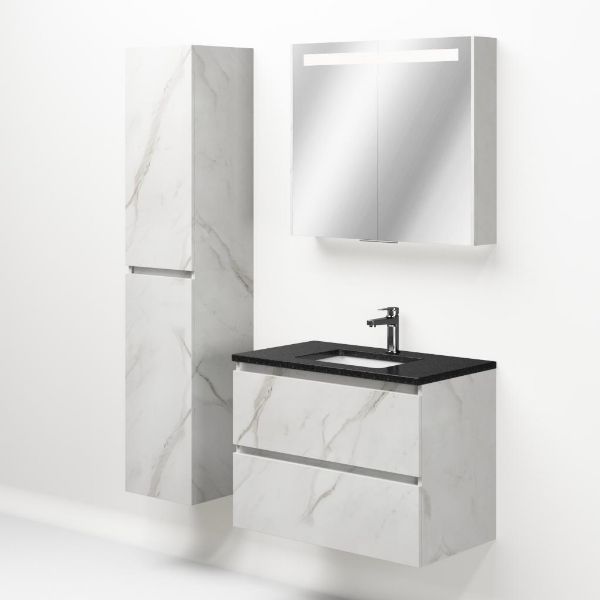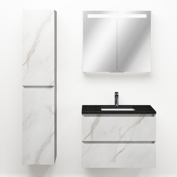 | Bellanti Elena/Ciro badmeubel 80x46 2 softclose laden marmer structuur wit greeploos keramische wastafel wit met 1 kraangat |