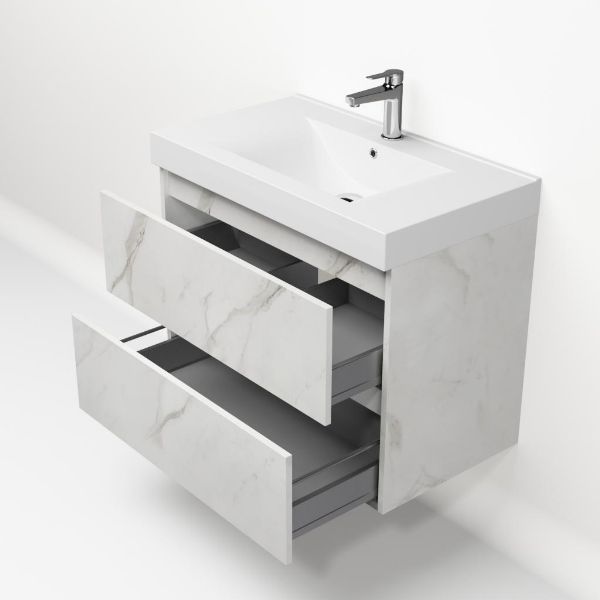 | | Bellanti Elena/Wave badmeubel 80x46 2 softclose laden marmer structuur wit greeploos polystone wastafel wit met 1 kraangat |