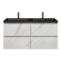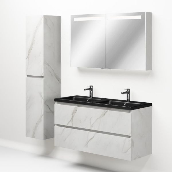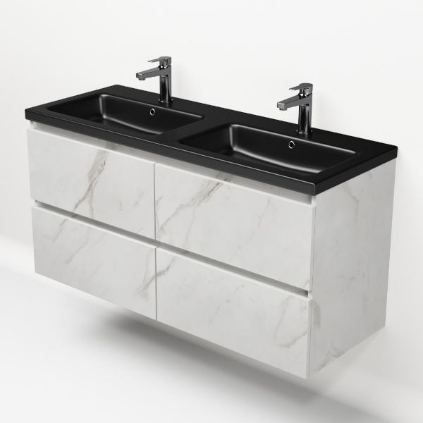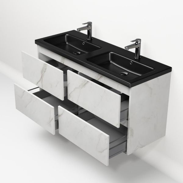 | Bellanti Elena/Amelia badmeubel 120x46 4 softclose laden marmer structuur wit greeploos keramische wastafel dubbel zwart mat met 2 kraangaten |