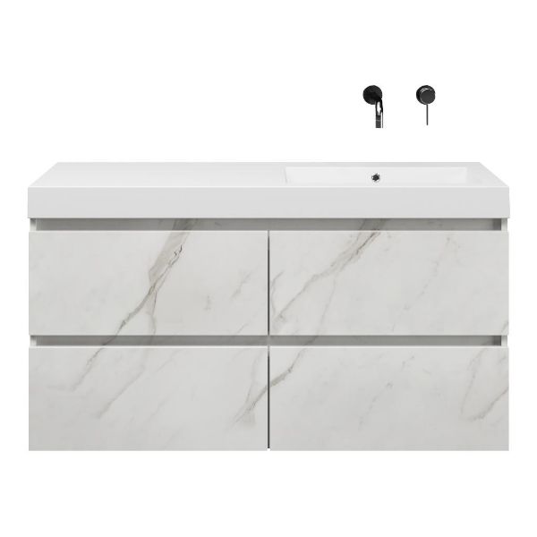 Bellanti Elena/Esta badmeubel 120x46 4 softclose laden marmer structuur wit greeploos polystone wastafel wit zonder kraangaten