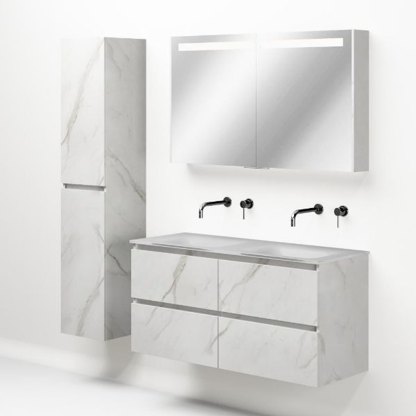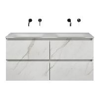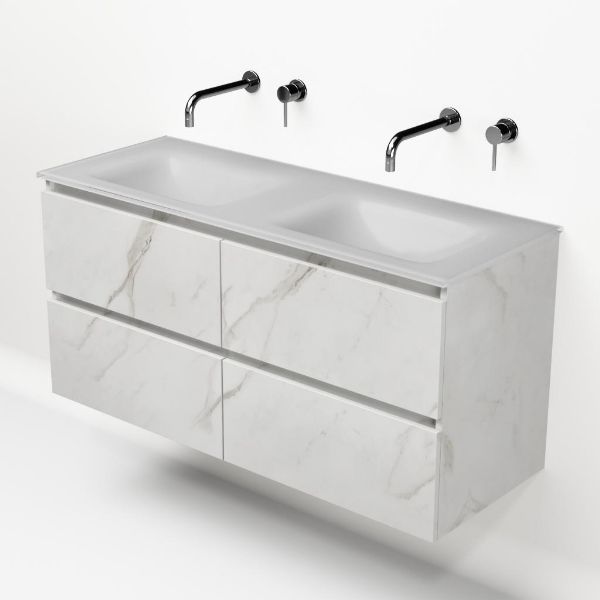 | | Bellanti Elena/Glass badmeubel 120x46 4 softclose laden marmer structuur wit greeploos glazen wastafel dubbel wit zonder kraangaten |