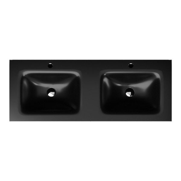 | | Bellanti Elena/Glass badmeubel 120x46 4 softclose laden marmer structuur wit greeploos glazen wastafel dubbel zwart met 2 kraangaten |