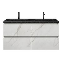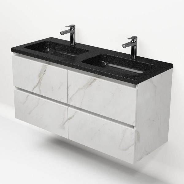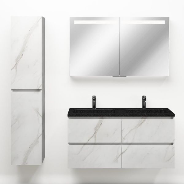 | | Bellanti Elena/Square badmeubel 120x46 4 softclose laden marmer structuur wit greeploos natuursteen wastafel dubbel shanxi black met 2 kraangaten |