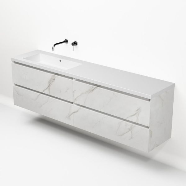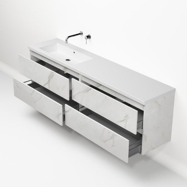 | Bellanti Elena/Esta-q badmeubel 200x46 4 softclose laden marmer structuur wit greeploos quartz enkele wastafel links mat wit zonder kraangat |