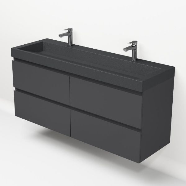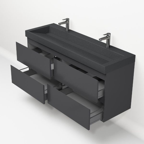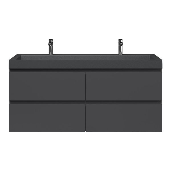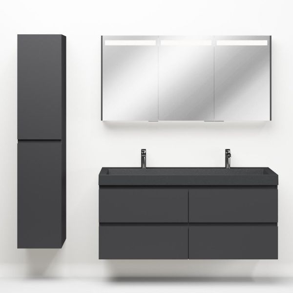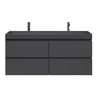 | Bellanti Gisella/Renzo badmeubel 140x46 4 softclose laden antraciet mat greeploos quartz wastafel mat grijs met 2 kraangaten |