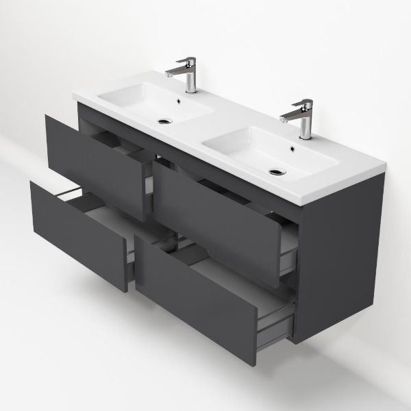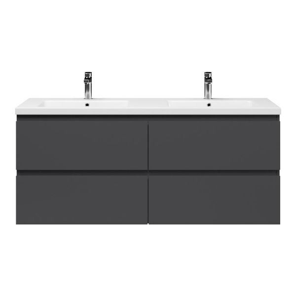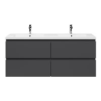 | Bellanti Gisella/Amelia badmeubel 140x46 4 softclose laden antraciet mat greeploos keramieke wastafell dubbel wit met 2 kraangaten |