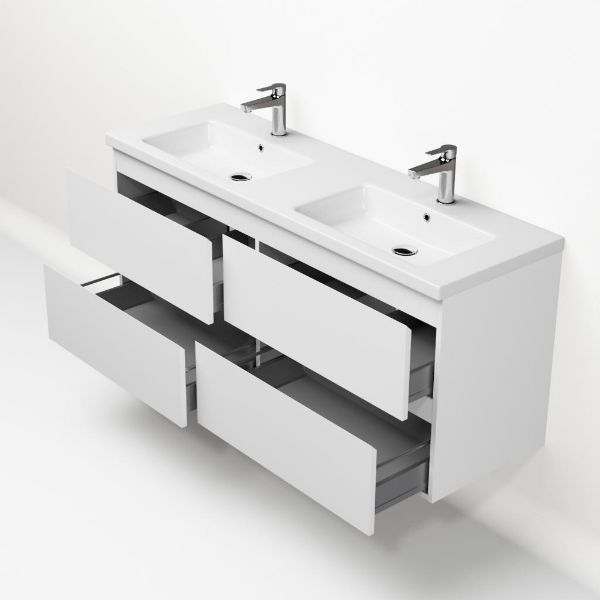 | | Bellanti Gisella/Amelia badmeubel 140x46 4 softclose laden wit mat greeploos keramieke wastafell dubbel wit met 2 kraangaten |