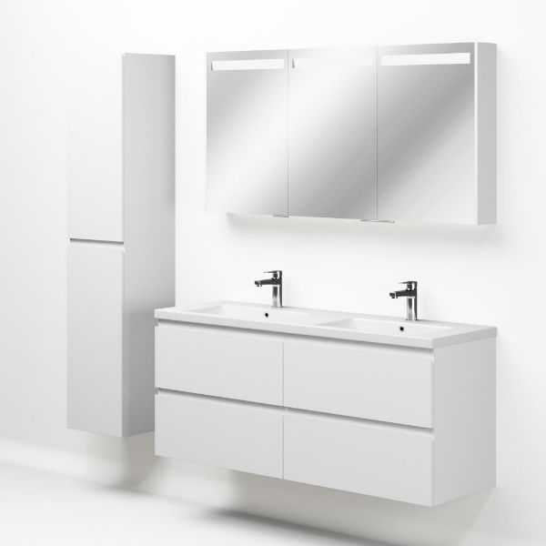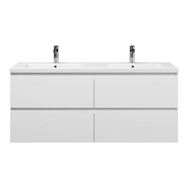 | Bellanti Gisella/Amelia badmeubel 140x46 4 softclose laden wit mat greeploos keramieke wastafell dubbel wit met 2 kraangaten |