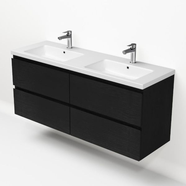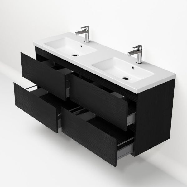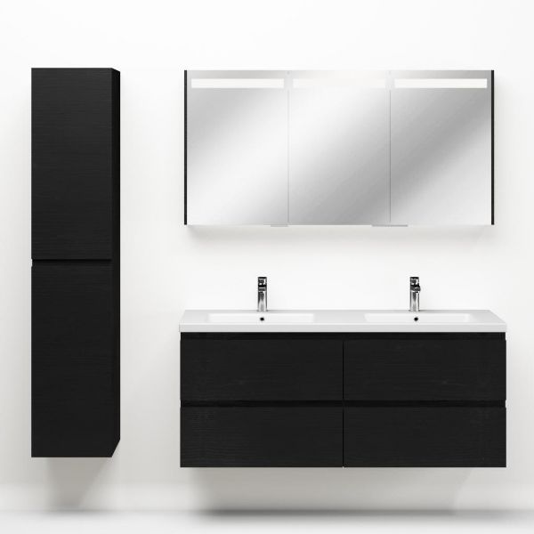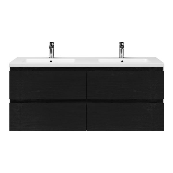 | | Bellanti Gisella/Amelia badmeubel 140x46 4 softclose laden zwart mat eiken greeploos keramiek wastafel dubbel mat wit met 2 kraangaten |