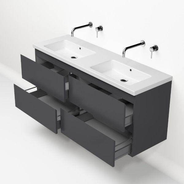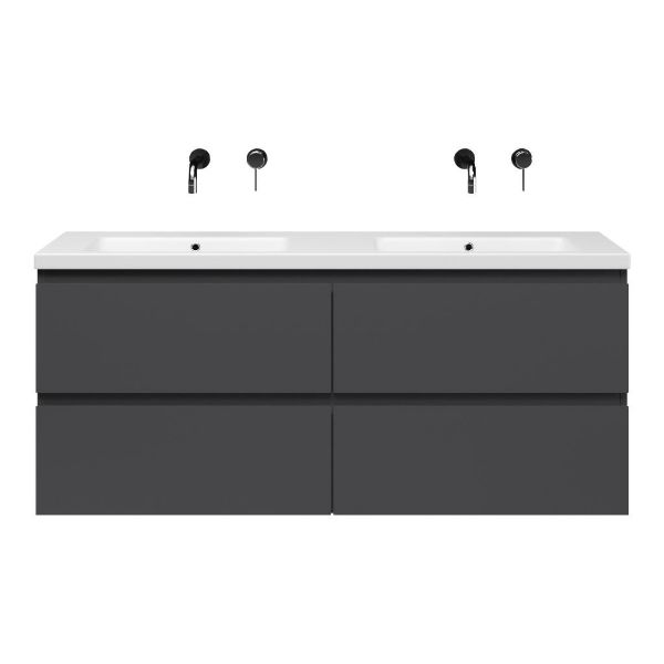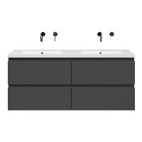 | | Bellanti Gisella/Amelia badmeubel 140x46 4 softclose laden antraciet mat greeploos keramiek wastafel dubbel mat wit zonder kraangaten |