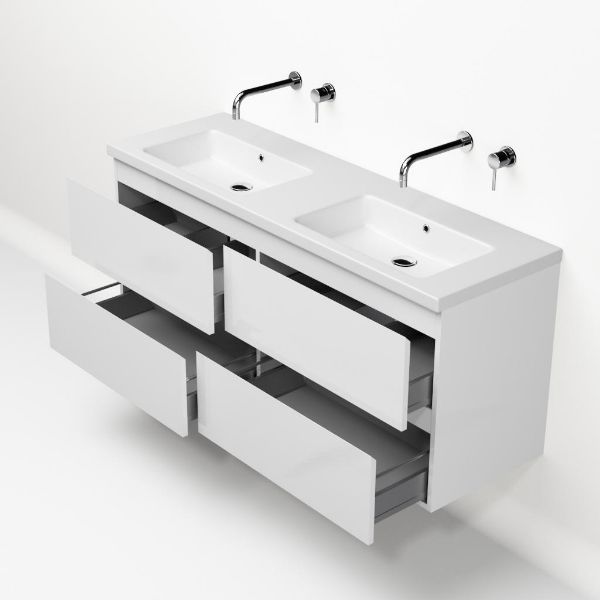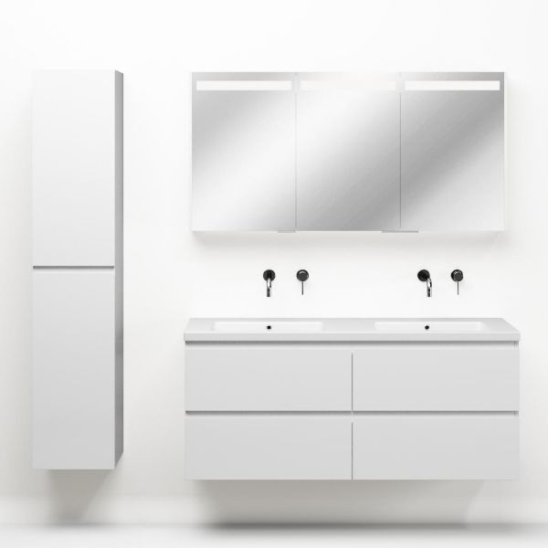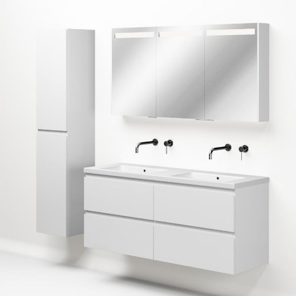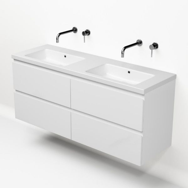 | | Bellanti Gisella/Amelia badmeubel 140x46 4 softclose laden wit hoogglans greeploos keramiek wastafel dubbel mat wit zonder kraangaten |