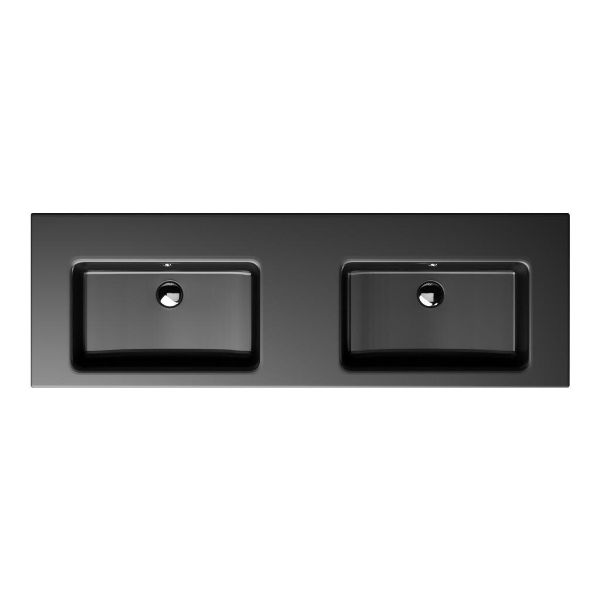 | Bellanti Gisella/Amelia badmeubel 140x46 4 softclose laden zwart mat eiken greeploos keramiek wastafel dubbel mat zwart met 2 kraangaten |