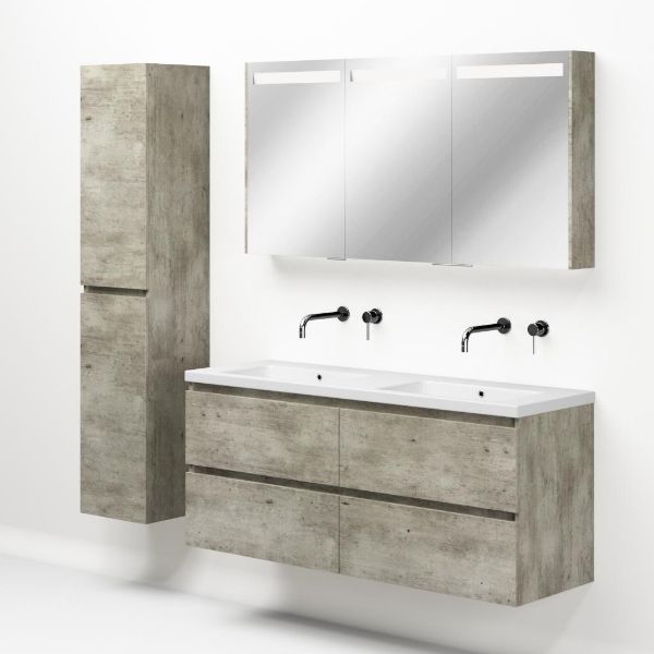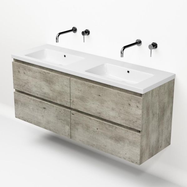 | Bellanti Elena/Amelia badmeubel 140x46 4 softclose laden steigerhout licht grijs greeploos keramische wastafel dubbel wit glans zonder kraangaten |