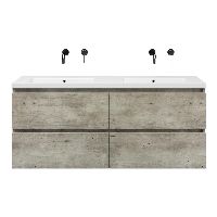 | | Bellanti Elena/Amelia badmeubel 140x46 4 softclose laden steigerhout licht grijs greeploos keramische wastafel dubbel wit glans zonder kraangaten |