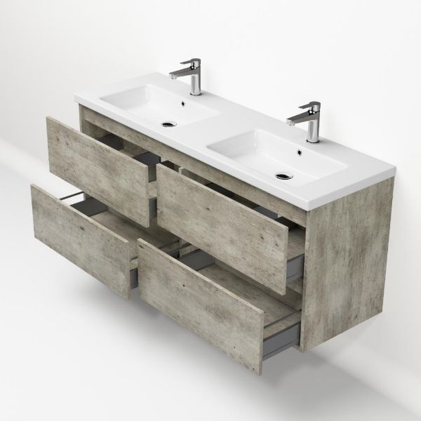 | | Bellanti Elena/Amelia badmeubel 140x46 4 softclose laden steigerhout licht grijs greeploos keramieke wastafell dubbel wit met 2 kraangaten |
