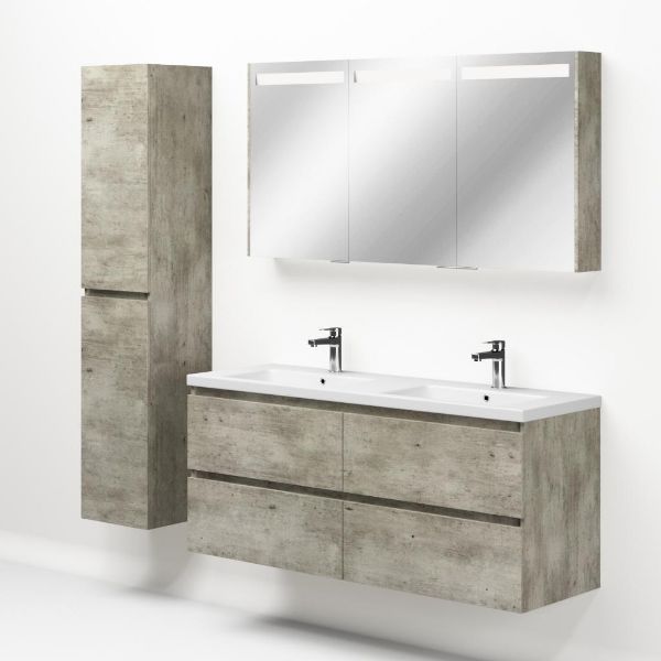 | Bellanti Elena/Amelia badmeubel 140x46 4 softclose laden steigerhout licht grijs greeploos keramieke wastafell dubbel wit met 2 kraangaten |