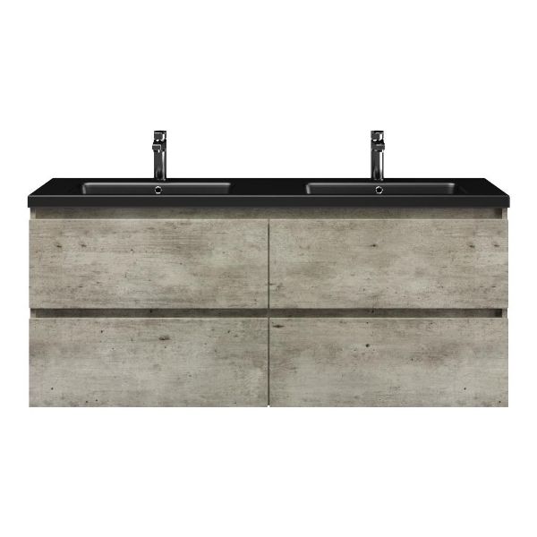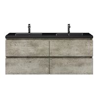 | | Bellanti Elena/Amelia badmeubel 140x46 4 softclose laden steigerhout licht grijs greeploos keramiek wastafel dubbel mat zwart met 2 kraangaten |
