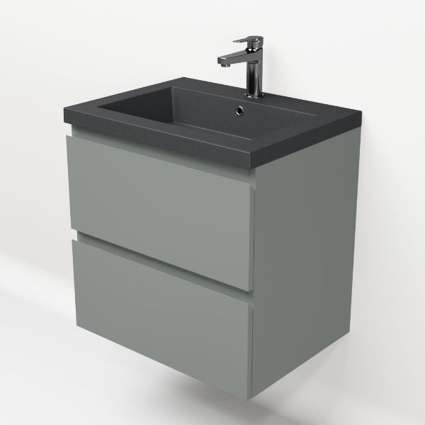 | Bellanti Gisella/Esta-Q badmeubel 60x46 2 softclose laden licht grijs greeploos quartz wastafel mat grijs met 1 kraangat |