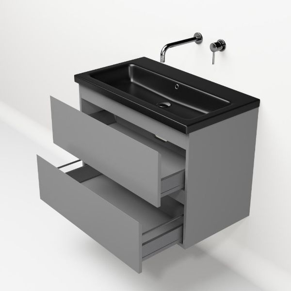 | Bellanti Gisella/Amelia badmeubel 80x46 2 softclose laden licht grijs greeploos keramische wastafel zwart mat zonder kraangaten |