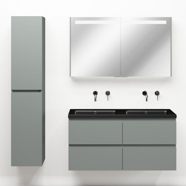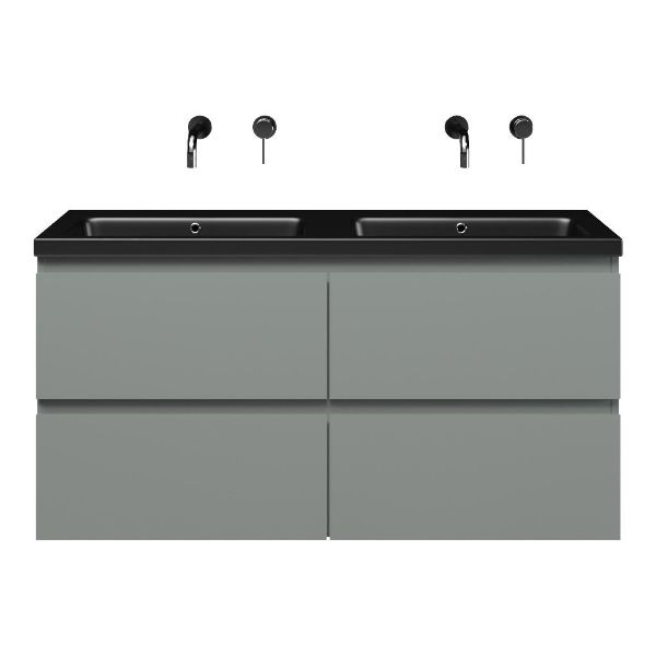 | Bellanti Gisella/Amelia badmeubel 120x46 4 softclose laden licht grijs greeploos keramische wastafel dubbel zwart mat zonder kraangaten |