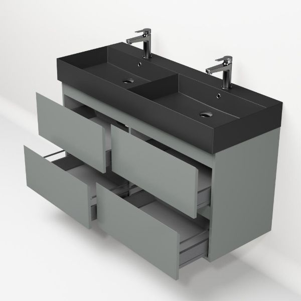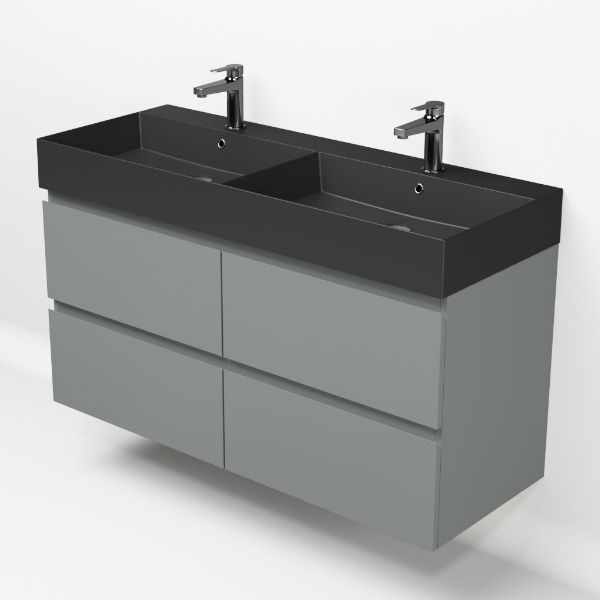 Bellanti Gisella/Azzurra badmeubel 120x46 4 softclose laden licht grijs greeploos keramische wastafel dubbel antraciet mat met 2 kraangaten