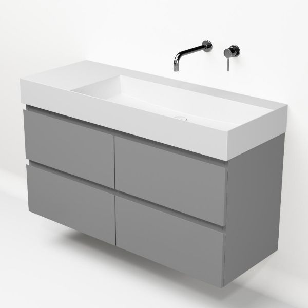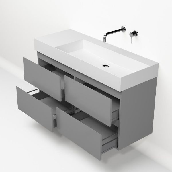 | Bellanti Gisella/Azzurra badmeubel 120x46 4 softclose laden licht grijs greeploos keramische wastafel rechts wit mat zonder kraangaten |