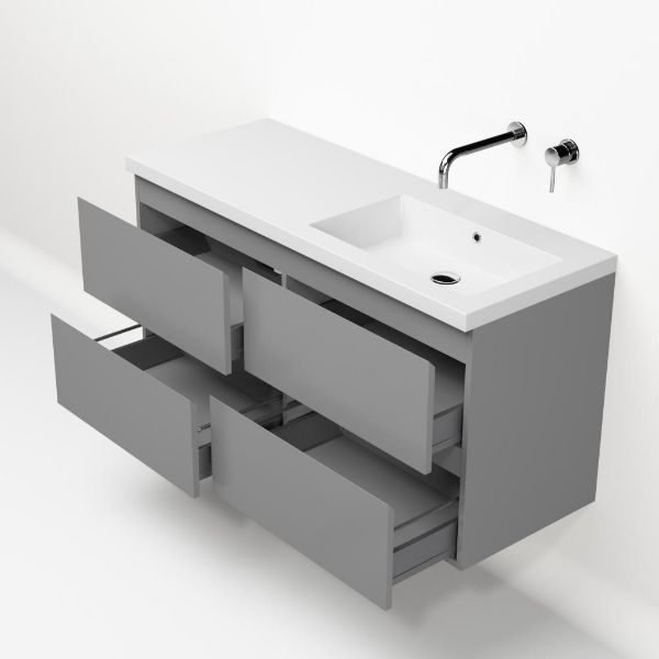 | Bellanti Gisella/Esta badmeubel 120x46 4 softclose laden licht grijs greeploos polystone wastafel wit zonder kraangaten |