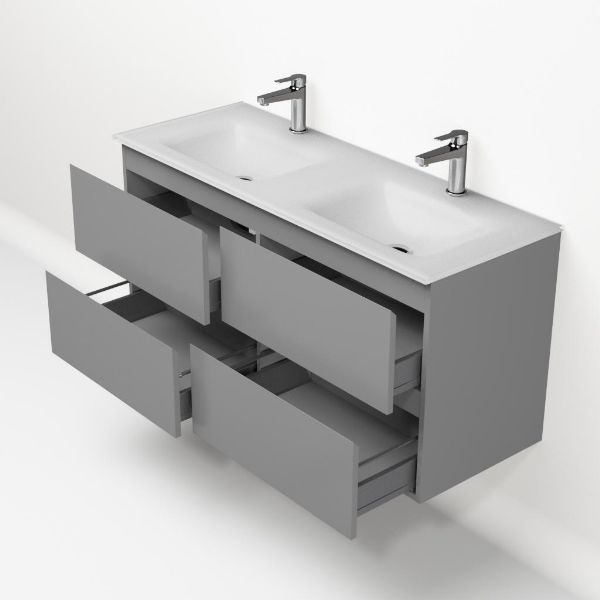 | Bellanti Gisella/Glass badmeubel 120x46 4 softclose laden licht grijs greeploos glazen wastafel dubbel wit met 2 kraangaten |