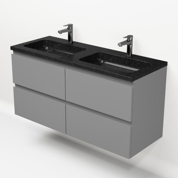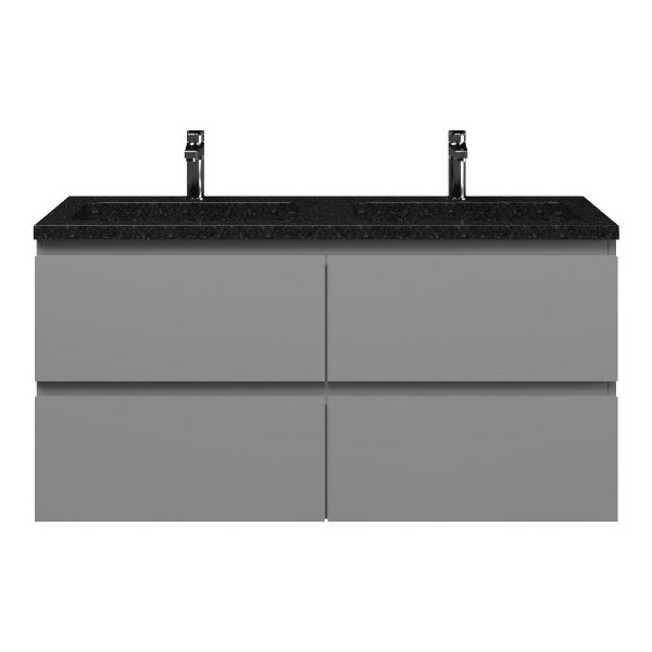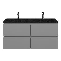 | | Bellanti Gisella/Square badmeubel 120x46 4 softclose laden licht grijs greeploos natuursteen wastafel dubbel shanxi black met 2 kraangaten |