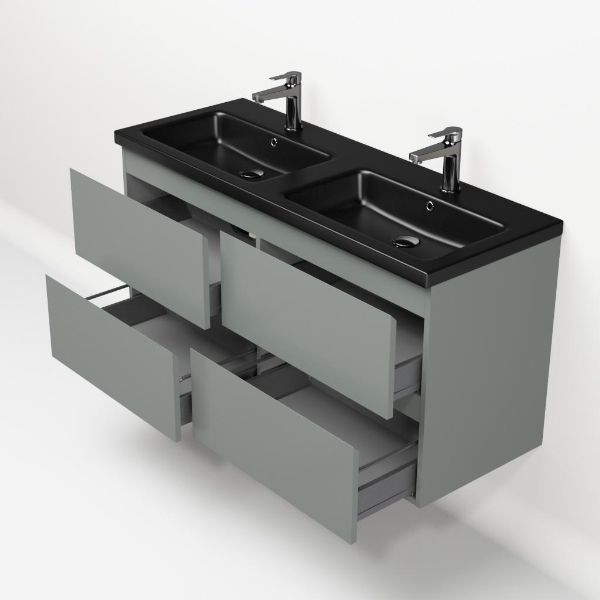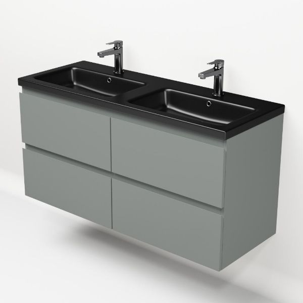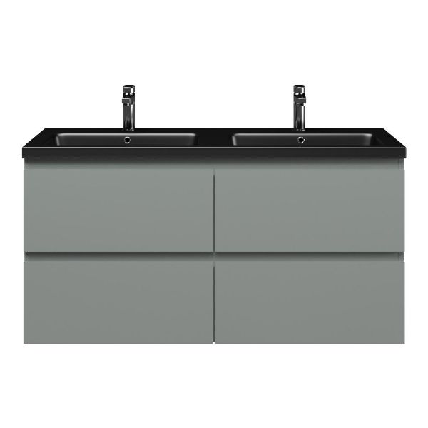 | Bellanti Gisella/Amelia badmeubel 120x46 4 softclose laden licht grijs greeploos keramische wastafel dubbel zwart mat met 2 kraangaten |